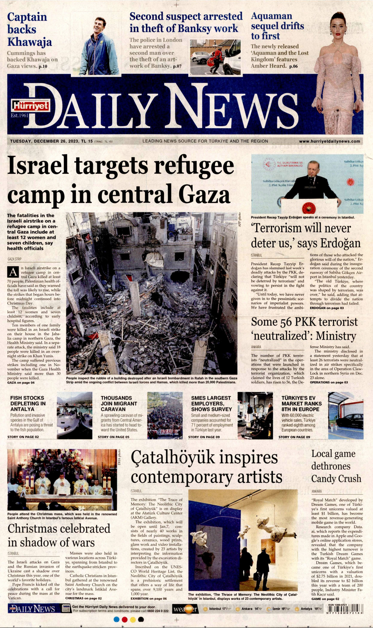 HÜRRİYET DAİLY NEWS Gazetesi 26 Aralık 2023, Salı Günü Manşeti