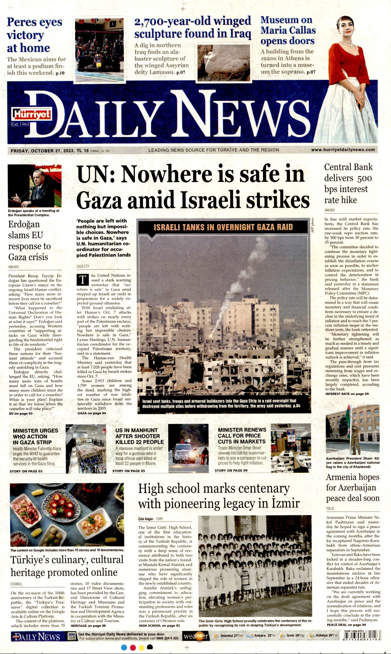 27 Ekim 2023, Cuma Günü Manşeti