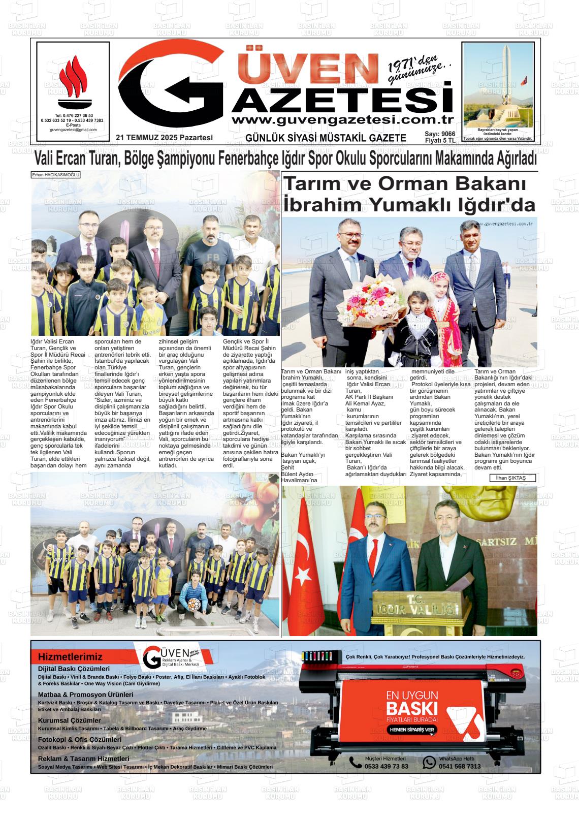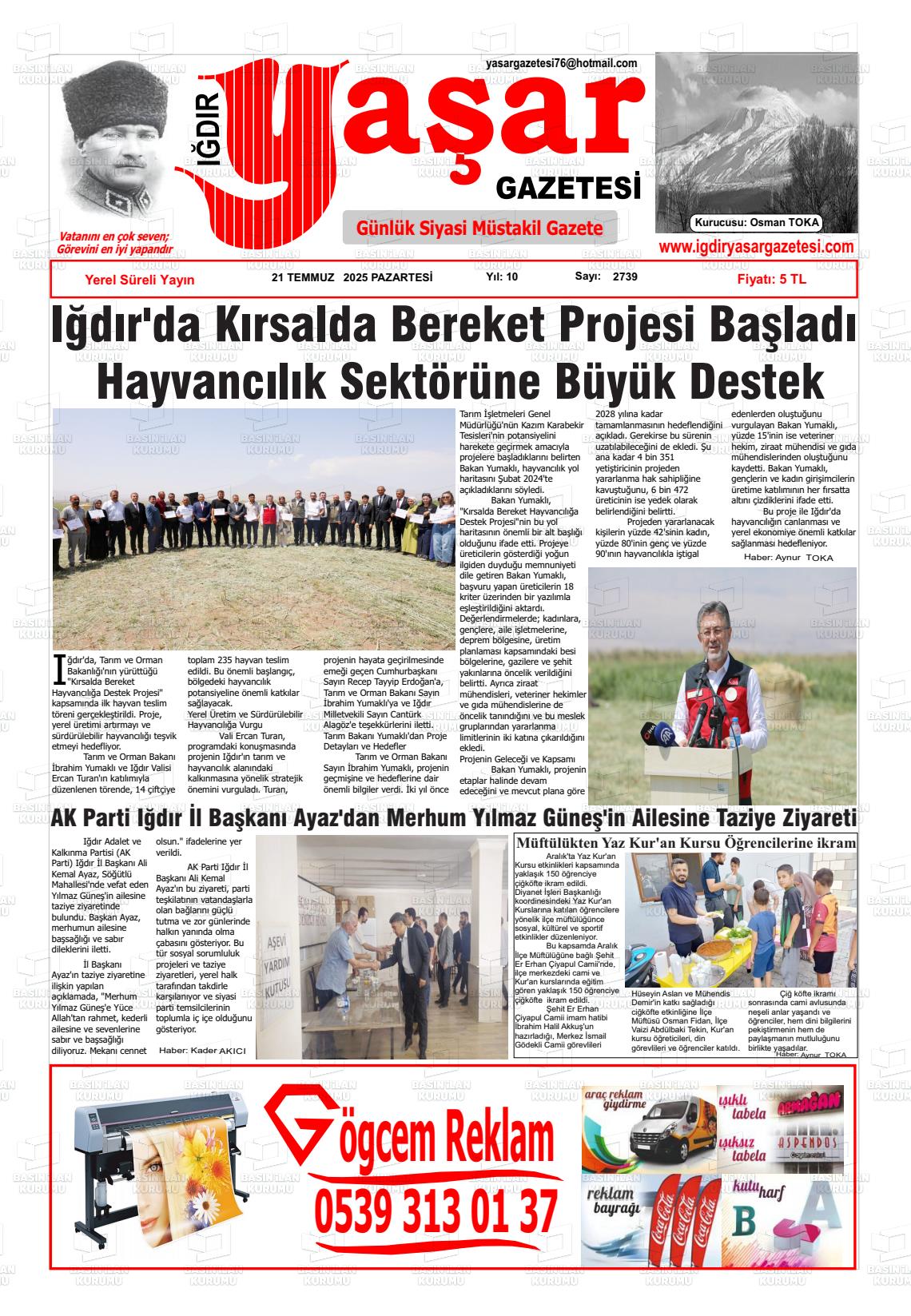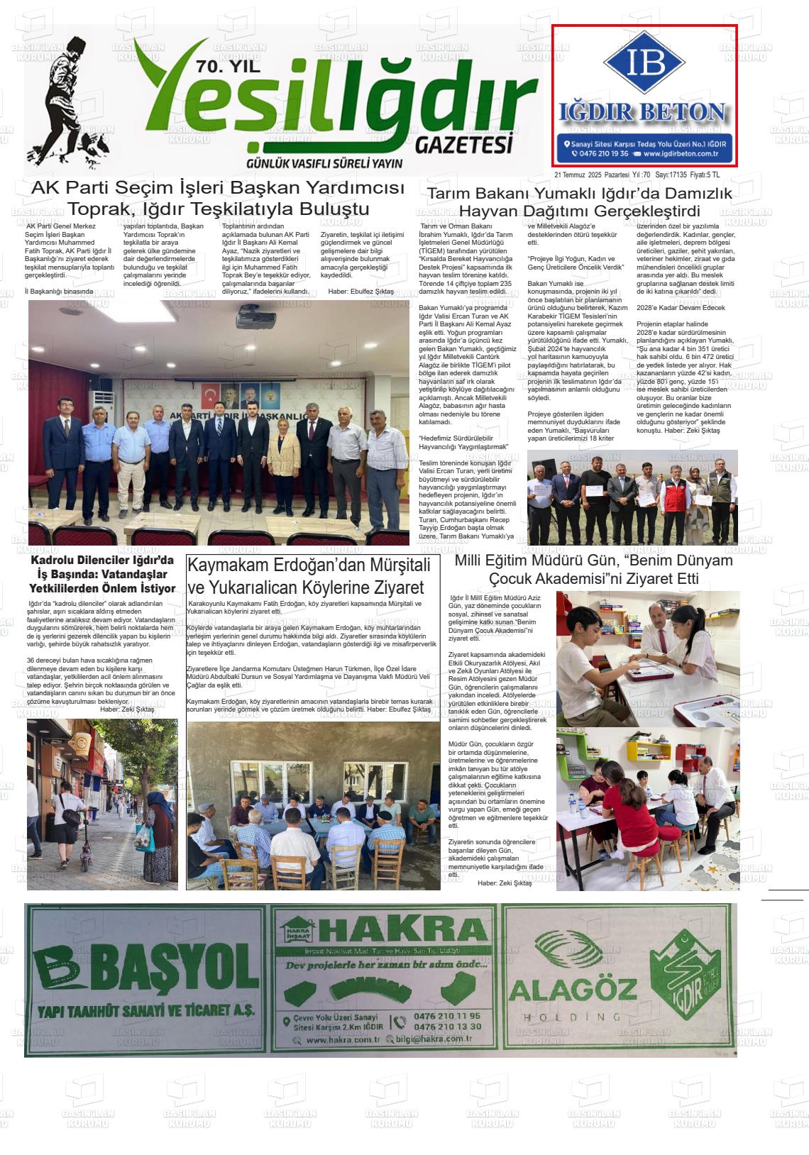 Iğdır Yerel Gazeteleri 29 Ocak 2026, Perşembe Günü Manşeti