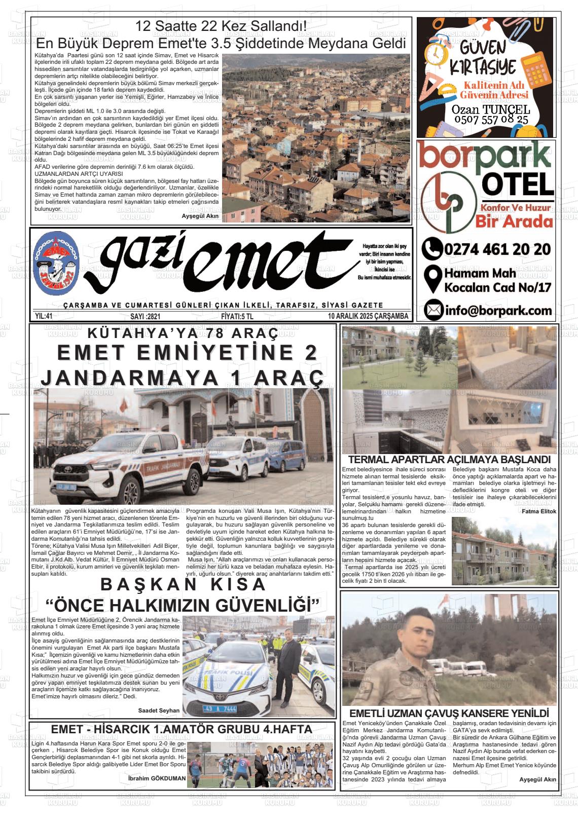 Kütahya Yerel Gazeteleri 10 Aralık 2025, Çarşamba Günü Manşeti