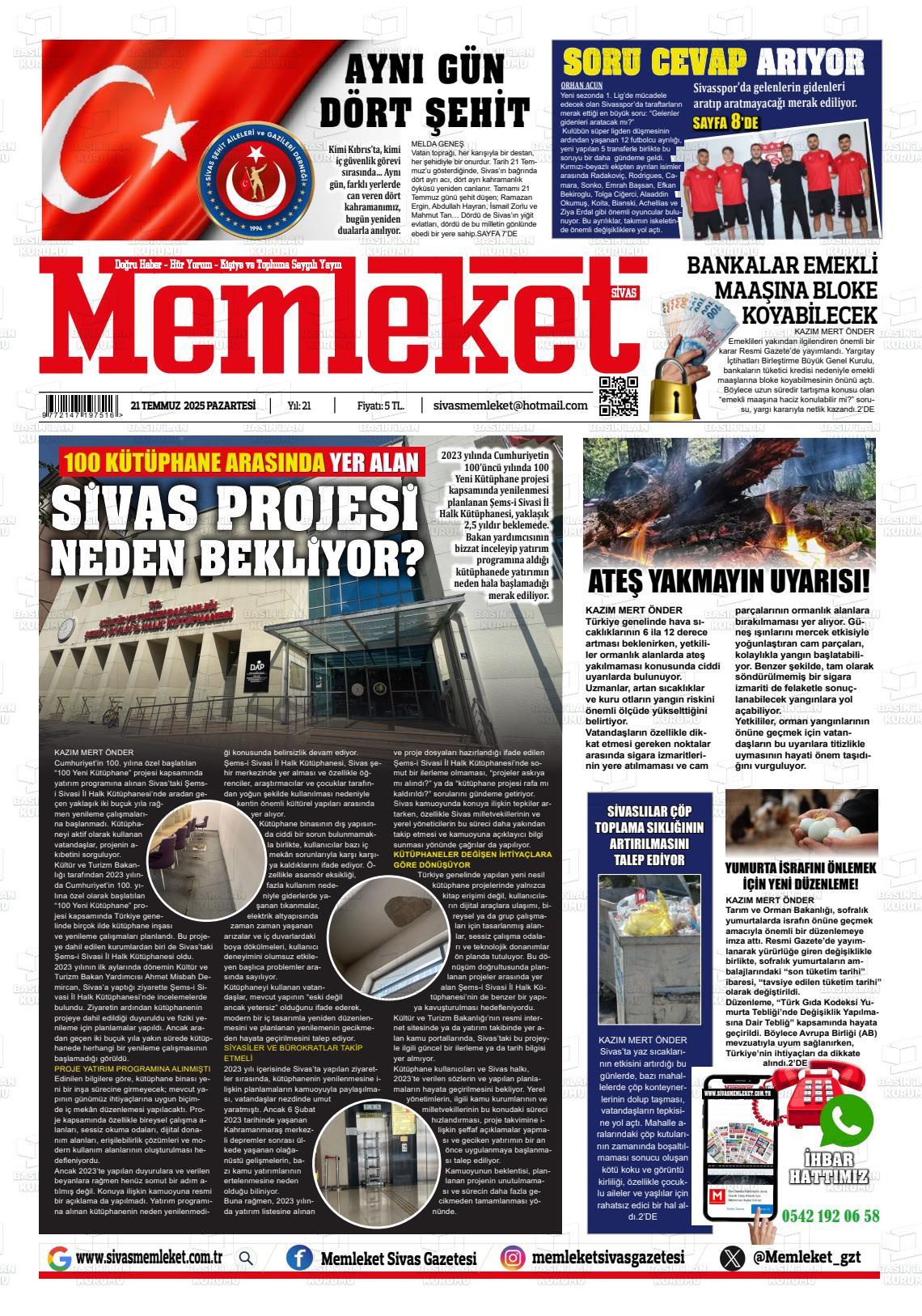 Sİvas Yerel Gazeteleri 23 Ocak 2026, Cuma Günü Manşeti