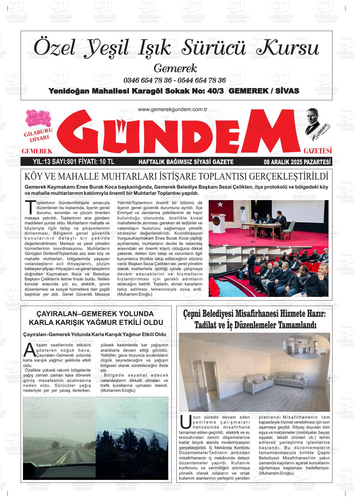 08 Aralık 2025, Pazartesi Günü Manşeti